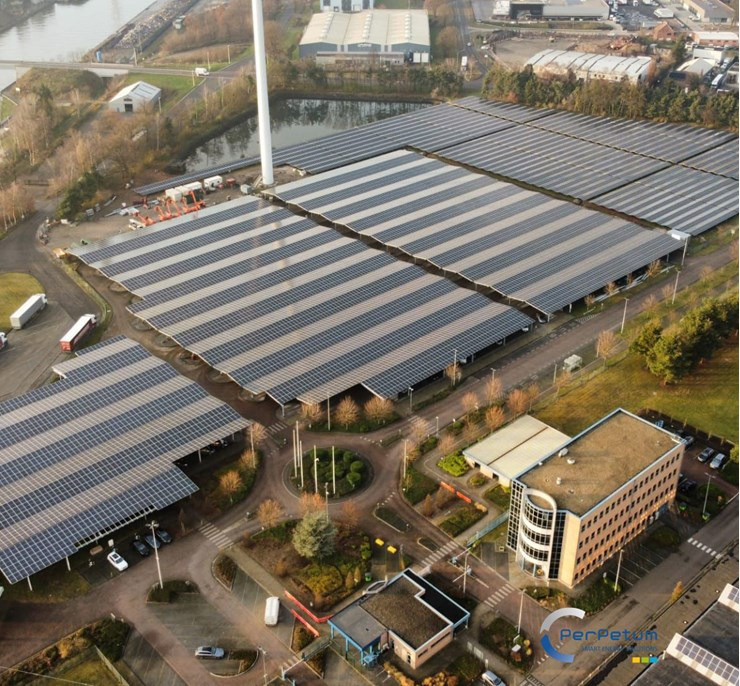 Le projet comprend 3 carports sur mesure, installés pour s’intégrer parfaitement au site historique tout en maximisant la production d’énergie renouvelable.